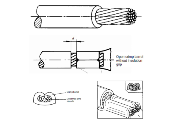 - The workmanship of the crimped connection should be good, The crimp barrel should not be bent, twisted and partially crimped.